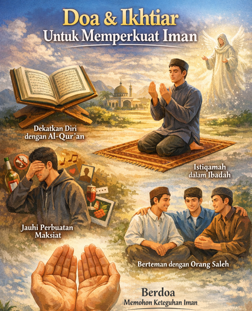 Islam mengajarkan bahwa memperkuat iman tidak cukup hanya dengan satu cara. Diperlukan perpaduan antara ikhtiar nyata (usaha) dan doa yang tulus kepada Allah SWT. Keduanya harus berjalan beriringan agar iman tetap kokoh dan tidak mudah goyah.