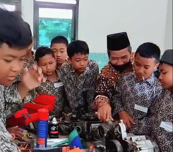 Kunjungan ini semakin menarik saat para siswa diajak menyaksikan dan ikut serta dalam praktik ekstrakurikuler tata boga dan otomotif. Melalui interaksi langsung ini, siswa tidak hanya mengenal fasilitas madrasah, tetapi juga mulai mengenal nilai disiplin dan kecermatan yang menjadi fondasi karakter di MTsN 8 Bantul. Rangkaian agenda campus tour ini dilanjutkan dengan makan bergizi gratis bersama dan diakhiri dengan salat dluhur berjamaah di musholla madrasah (jkp).