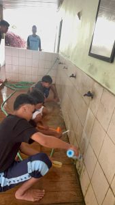 Berbeda dengan Jum’at (29/8/2025) pagi dilaksanakan bersih lingkungan madrasah. Tempat yang dibersihkan diantaranya musholla, kelas, tempat parkir, kantin, lapangan basket, aula, dan perpustakaan. Tampak diantaranya guru mendampingi murid membersihkan musholla, tempat wudlu, dan taman di samping tempat parkir. Setelah kegiatan Masbei selesai dilanjutkan pembelajaran jam pertama (jkp).